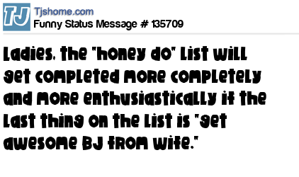 X says Ladies, the "honey do" list will get completed more completely and more enthusiastically if the last thing on the list is "get awesome BJ from wife."