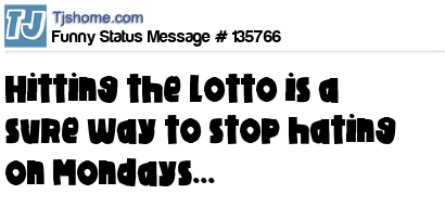 X Hitting the lotto is a sure way to stop hating on Mondays...