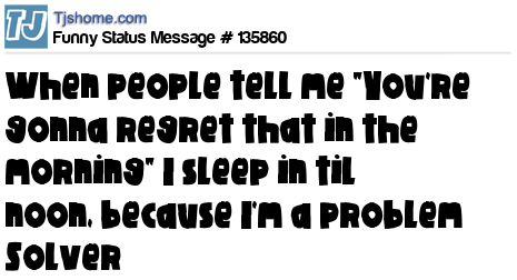 - # 206268 When people tell me “you’re gonna regret that in the morning,” I sleep until noon, because I’m a problem solver.