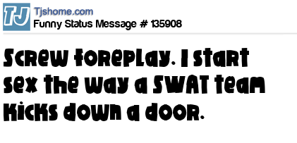 X says Screw foreplay. I start sex the way a SWAT team kicks down a door.