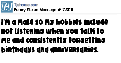 X says I'm a male so my hobbies include not listening when you talk to me and consistently forgetting birthdays and anniversaries.