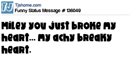 - # 136123 Miley Miley Miley ..... I think you and that referee last night broke your daddy's achy breaky heart .... I just don't think he'd understand ..... Wheeeee hooooooo !