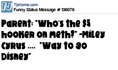 X says Parent: "Who's the $5 hooker on meth?" -Miley Cyrus .... "Way to go Disney"