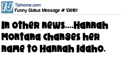 X In other news....Hannah Montana changes her name to Hannah Idaho.
