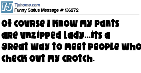 X says Of course I know my pants are unzipped lady...its a great way to meet people who check out my crotch.