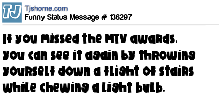 X If you missed the MTV awards, you can see it again by throwing yourself down a flight of stairs while chewing a light bulb.