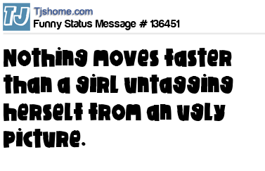 - # 88781 Nothing moves faster than a girl untagging herself from a picture that makes her look ugly..:D