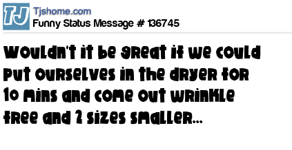 X says Wouldn't it be great if we could put ourselves in the dryer for 10 mins and come out wrinkle free and 2 sizes smaller...