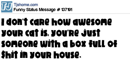X says I don't care how awesome your cat is, you're just someone with a box full of $hit in your house.