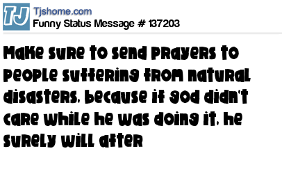 X says Make sure to send prayers to people suffering from natural disasters, because if god didn't care while he was doing it, he surely will after