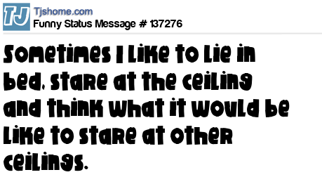 X says Sometimes I like to lie in bed, stare at the ceiling and think what it would be like to stare at other ceilings.
