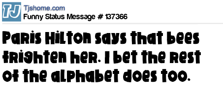 X Paris Hilton says that bees frighten her. I bet the rest of the alphabet does too.