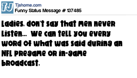 X Ladies, don't say that men never listen... We can tell you every word of what was said during an NFL pregame or in-game broadcast.