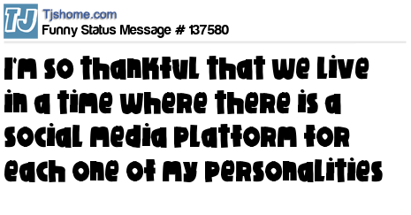 X says I'm so thankful that we live in a time where there is a social media platform for each one of my personalities