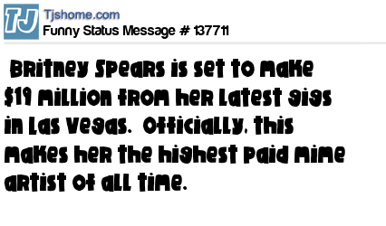 X says Britney Spears is set to make $19 million from her latest gigs in Las Vegas. Officially, this makes her the highest paid mime artist of all time.