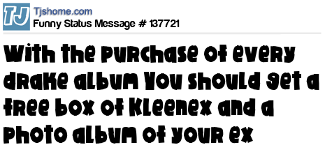 X With the purchase of every drake album You should get a free box of Kleenex and a photo album of your ex