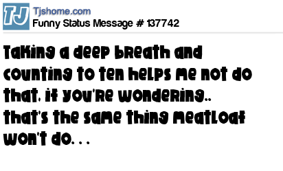 X says Taking a deep breath and counting to ten helps me not do that, if you're wondering.. that's the same thing meatloaf won't do. . .