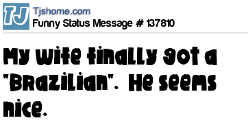 - # 74329 Girl goes back to her dorm and says to her Blonde friend, I slept with a Brazilian man last night. The Blonde replies: OMG you SLUT! How many is a Brazilian???