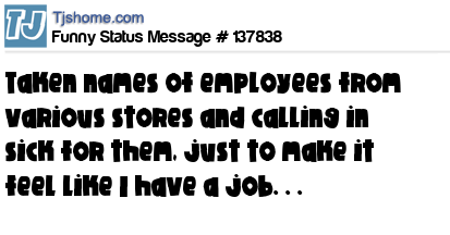 X says Taken names of employees from various stores and calling in sick for them, just to make it feel like I have a job. . .