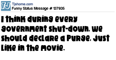 X I think during every government shut-down, we should declare a Purge, just like in the movie.