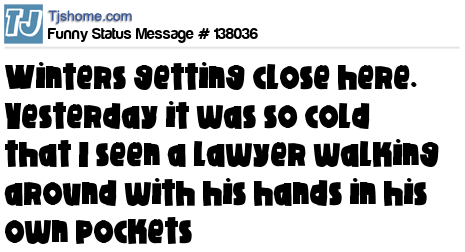 - # 16901 its so cold outside I saw a lawyer with his hands in his own pockets