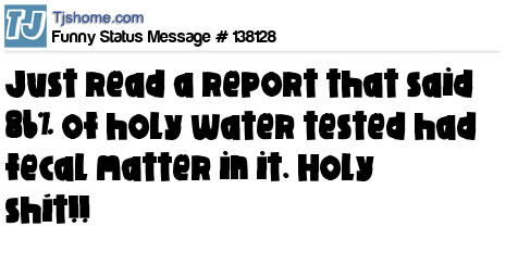 X Just read a report that said 86% of holy water tested had fecal matter in it. Holy shít!!