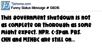 X This government shutdown is not as complete or thorough as some might expect. NPR, C-Span, PBS, CNN and MSNBC are still on...