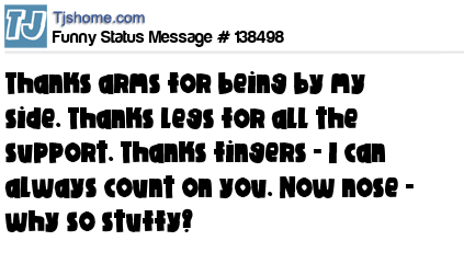 - # 151550 Thanks arms for being by my side. Thanks legs for all the support. Thanks middle fingers for sticking up for me!