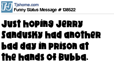- # 104114 Hey Jerry Sandusky, I hope Bubba treats you in prison like you treated those kids.