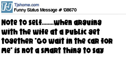 X says note to self........when arguing with the wife at a public get together "Go wait in the car for me" is not a smart thing to say