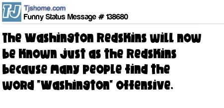 - # 150502 Dan Snyder finally agreed that the name Washington Redskins is offensive, so from now on they'll be known simply as the Redskins.