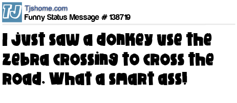 X says I just saw a donkey use the zebra crossing to cross the road. What a smart ass!