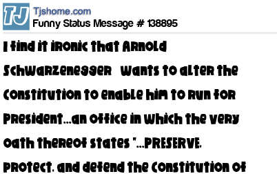 X says I find it ironic that Arnold Schwarzenegger wants to alter the Constitution to enable him to run for President...an office in which the very oath thereof states "...PRESERVE, protect, and defend the Constitution of the United States."