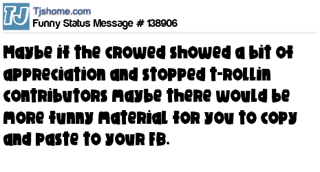 X says Maybe if the crowed showed a bit of appreciation and stopped t-rollin contributors maybe there would be more funny material for you to copy and paste to your FB.