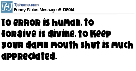 X says To error is human, to forgive is divine, to keep your damn mouth shut is much appreciated.