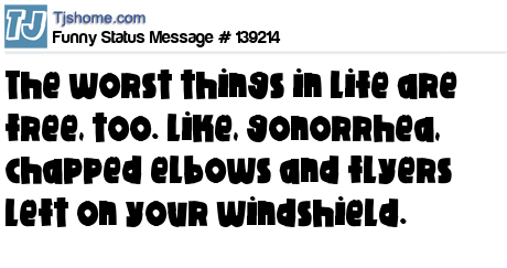 X The worst things in life are free, too. Like, gonorrhea, chapped elbows and flyers left on your windshield.