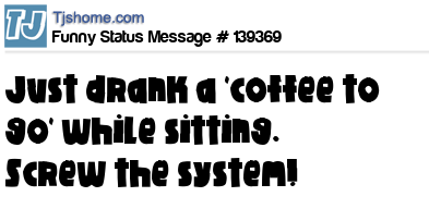 X says Just drank a 'coffee to go' while sitting. Screw the system!