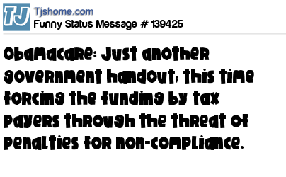 X Obamacare: Just another government handout; this time forcing the funding by tax payers through the threat of penalties for non-compliance.