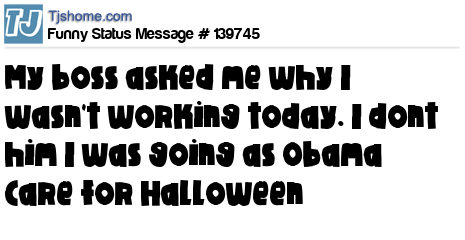 X says My boss asked me why I wasn't working today. I dont him I was going as Obama Care for Halloween