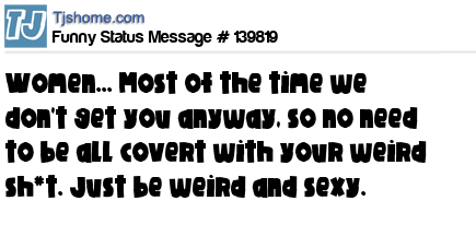 X says Women... Most of the time we don't get you anyway, so no need to be all covert with your weird sh*t. Just be weird and sexy.