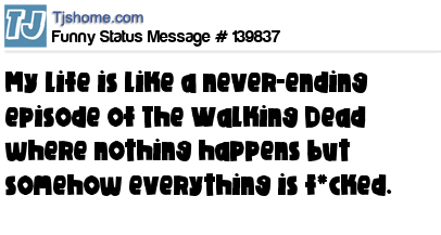 - # 139886 " My life is like a never-ending episode of The Walking Dead where nothing happens but somehow everything is f*cked. " Girlfriend!