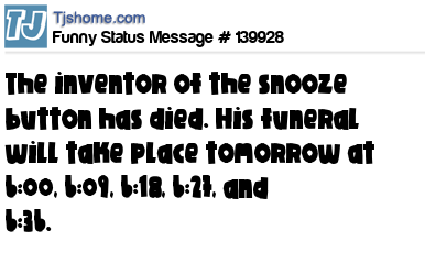 X The inventor of the snooze button has died. His funeral will take place tomorrow at 6:00, 6:09, 6:18, 6:27, and 6:36.