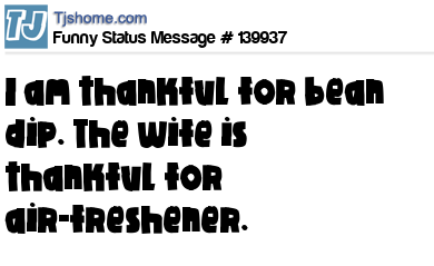 X I am thankful for bean dip. The wife is thankful for air-freshener.