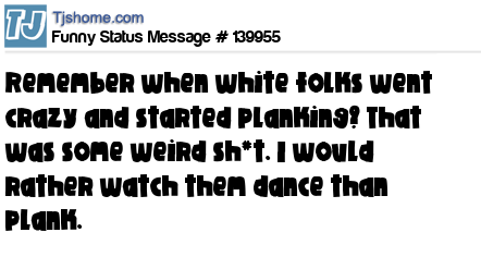 X says Remember when white folks went crazy and started planking? That was some weird sh*t. I would rather watch them dance than plank.