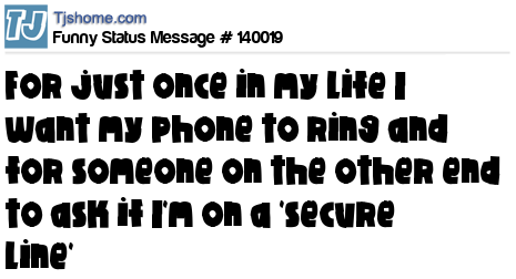 X says For just once in my life I want my phone to ring and for someone on the other end to ask if I'm on a 'secure line'