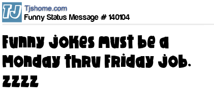 X says funny jokes must be a Monday thru Friday job. zzzz