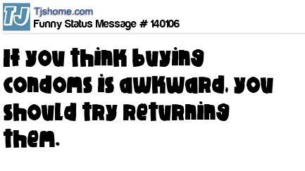 - # 196265 Hey if you think buying condoms is awkward, try returning them.