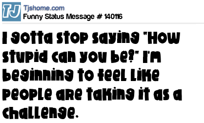 - # 47315 I have to stop saying "How stupid can you be?" I think people are taking it as a challenge.