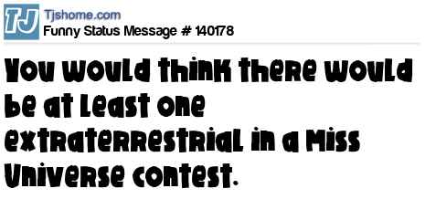 X says You would think there would be at least one extraterrestrial in a Miss Universe contest.