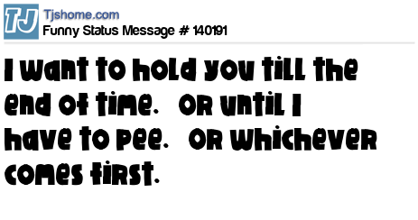 X says I want to hold you till the end of time. Or until I have to pee. Or whichever comes first.